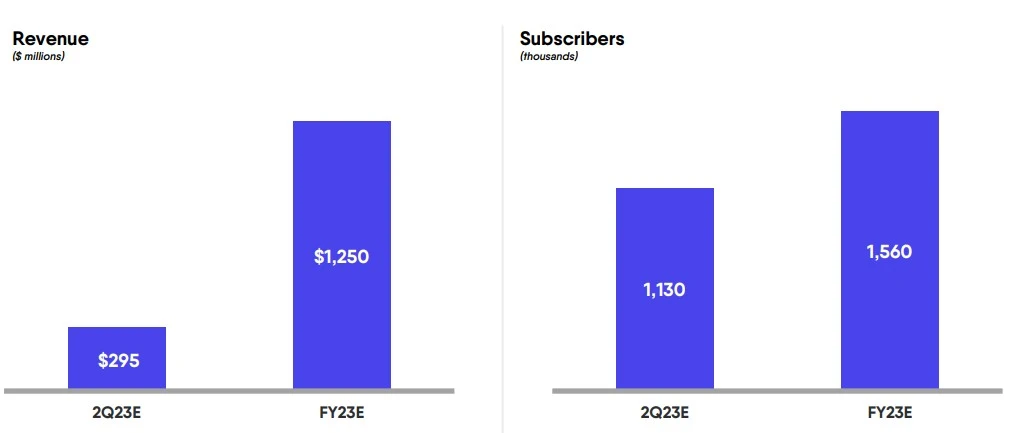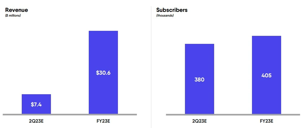 2023년 북미 지역에서의 수익과 구독자 수 예측치
